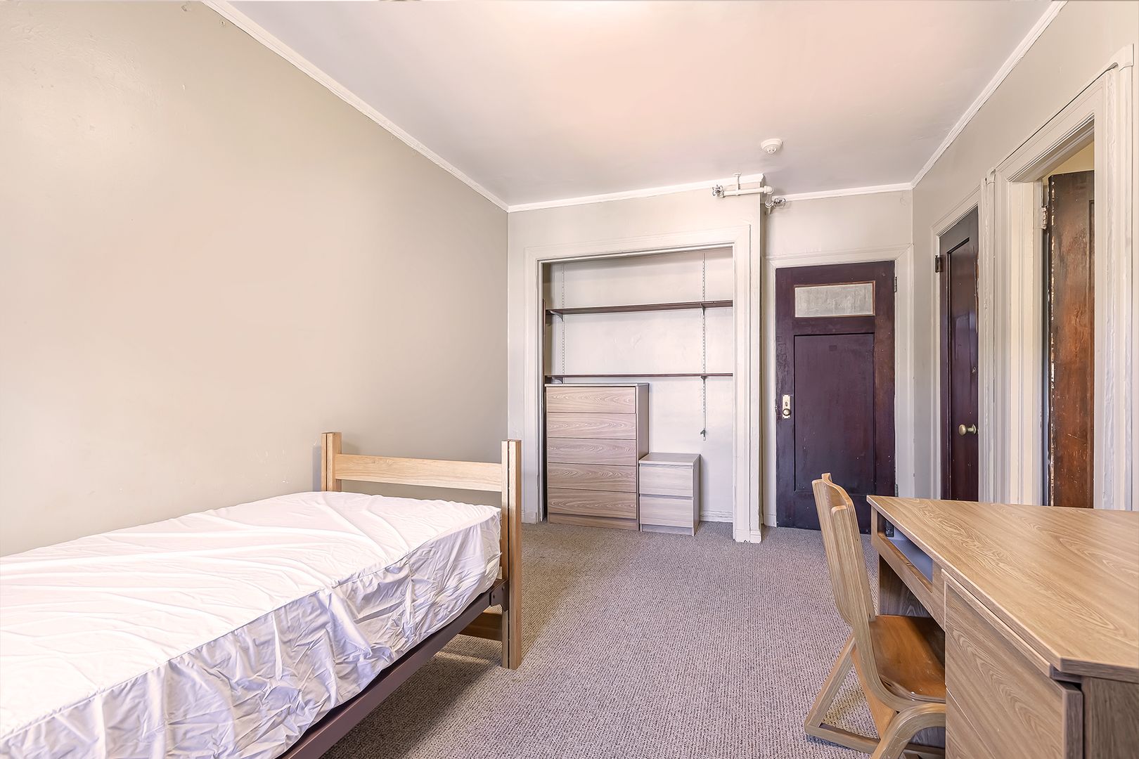 5540 S Hyde Park Boulevard offers vintage single occupancy units with attached private bathrooms. The units come with optional furnishings including mini-fridge, microwave, dresser, desk and bed frame with mattress. 5540 features a spacious game room and study lounge with printing station. There is a expansive community kitchen on the ground level, along with a fitness center and laundry on the lower level.
