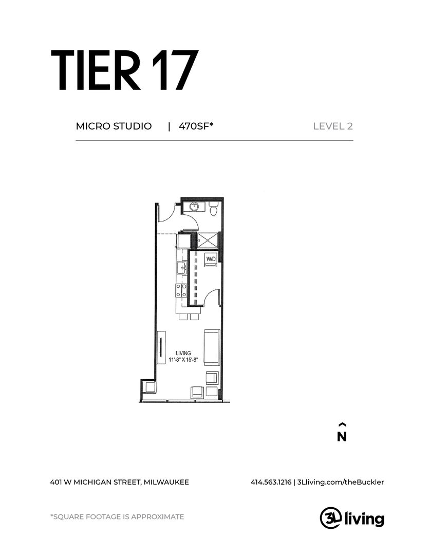 Experience downtown Milwaukee living with this sleek studio at The Buckler, featuring floor-to-ceiling windows for ample natural light and skyline views. Designed with high-end finishes and top-quality appliances, this open-concept space combines comfort with contemporary style. Residents enjoy premium amenities like a fitness center, basketball court, and outdoor terrace, all within walking distance to 3rd Street Market Hall, Fiserv Forum, and downtown hotspots. Elevate your urban lifestyle in one of Milwaukee’s most sought-after residences!