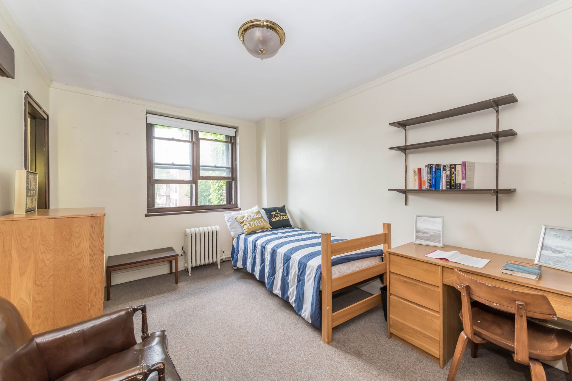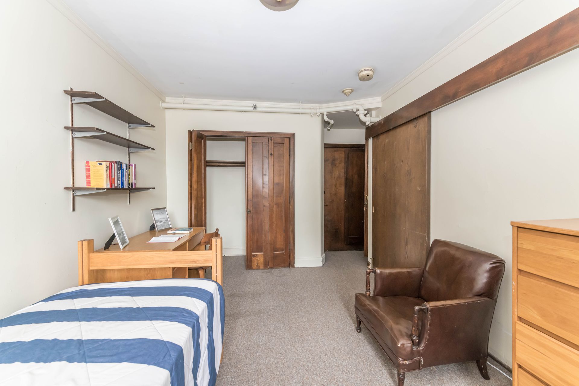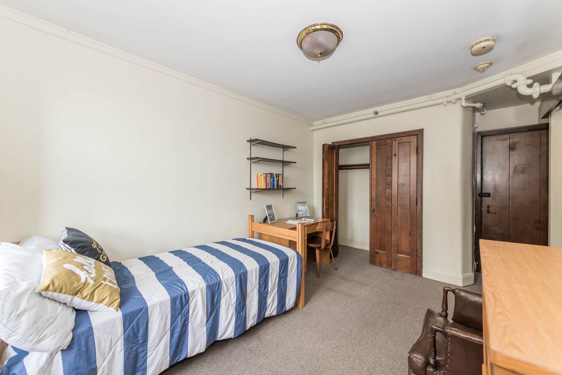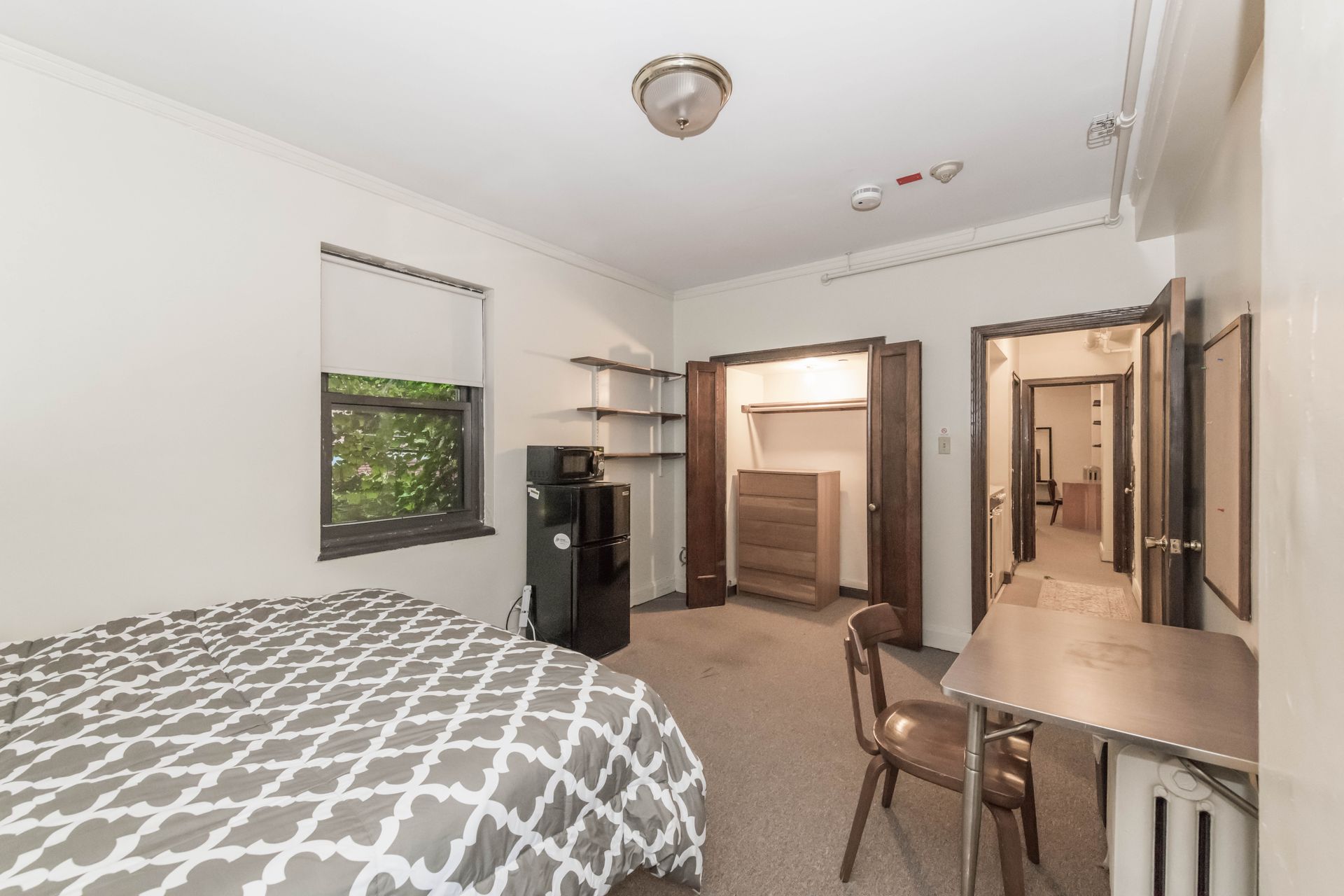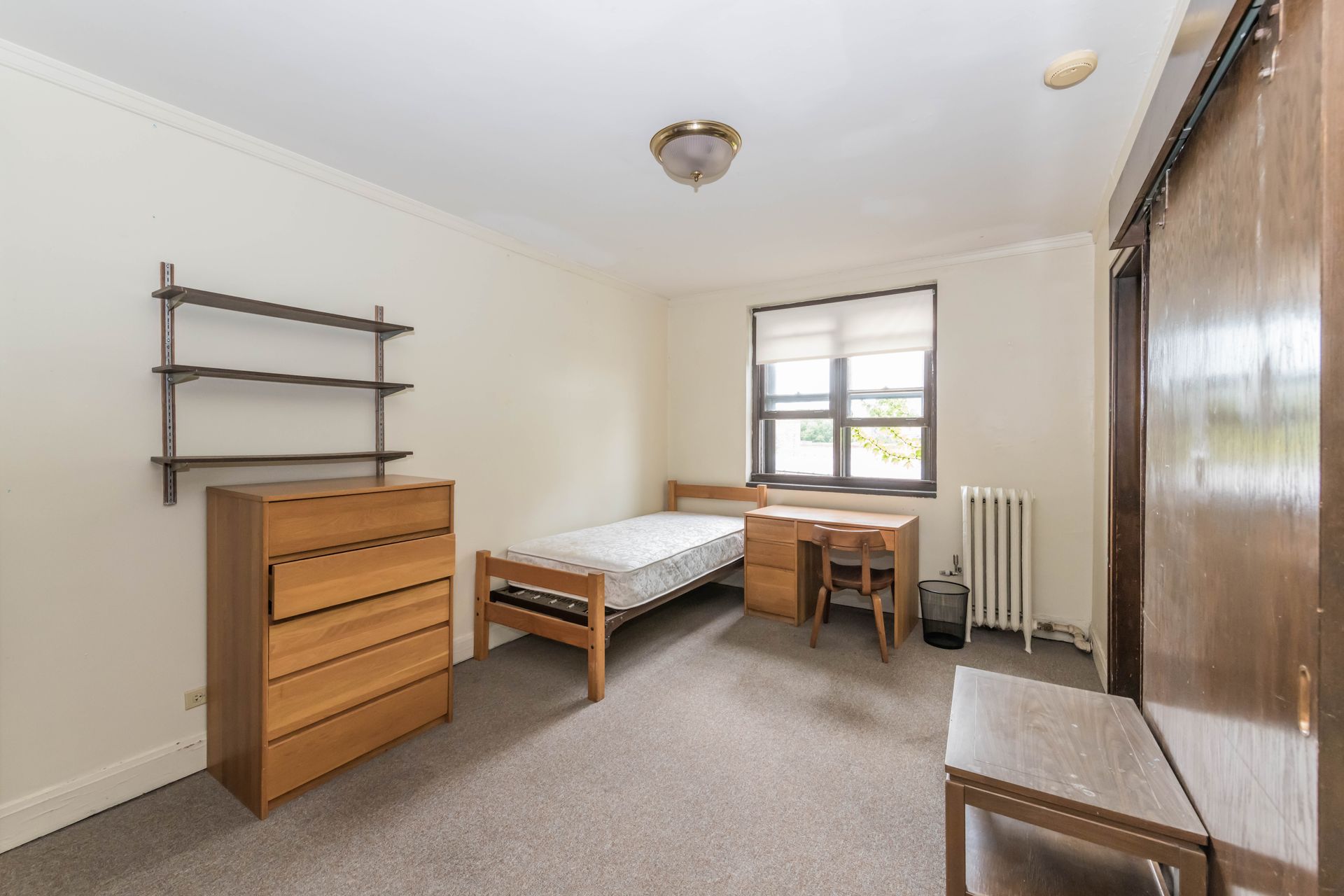 5748 S Blackstone Avenue offers vintage Jack & Jill style units, with a shared kitchenette and bathroom with one other resident – areas can be secured with locking doors on either side. The units come with optional furnishings including mini-fridge, microwave, dresser, desk and bed frame with mattress. 5748 features a study lounge and TV room, along with a full community kitchen on the ground level.
