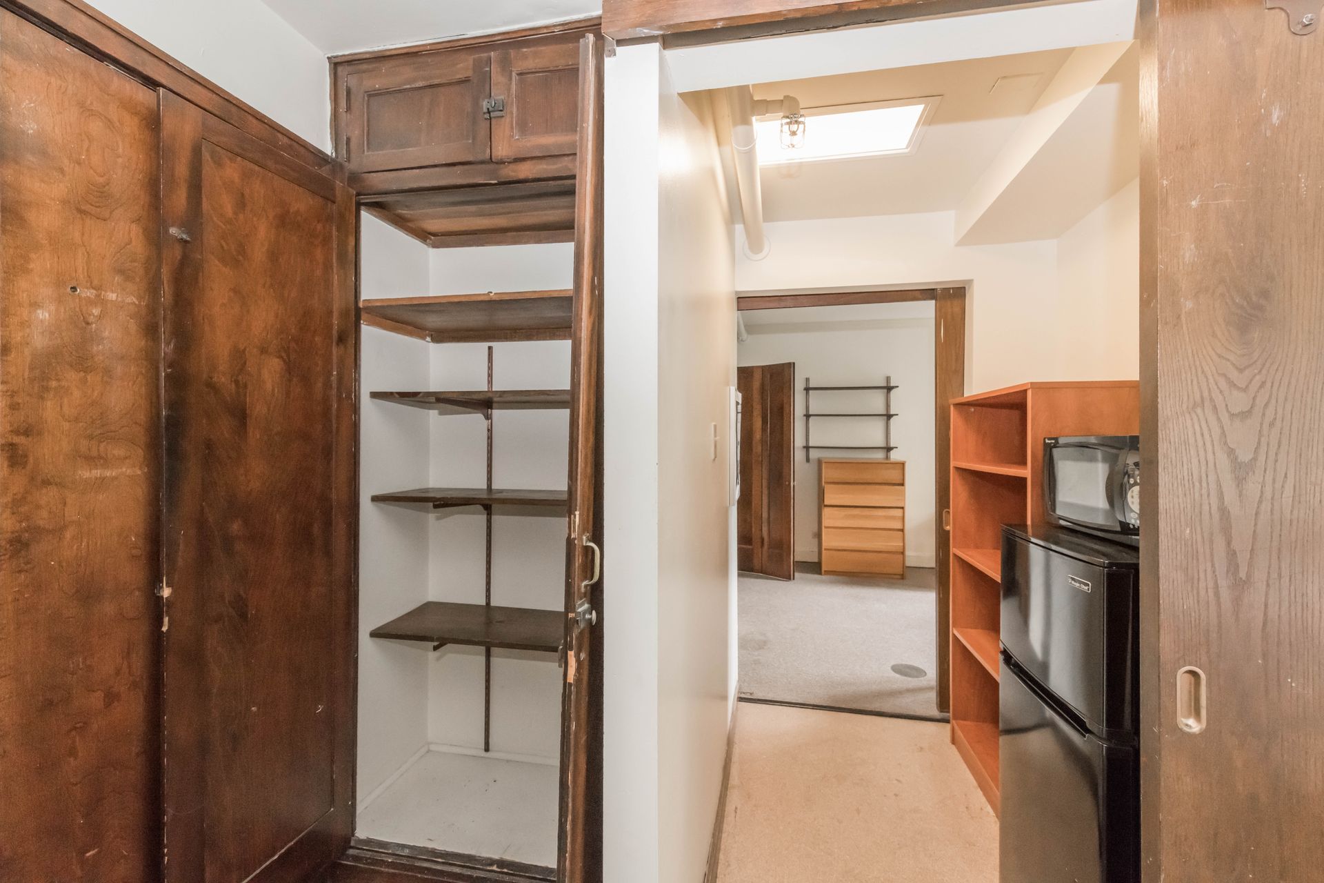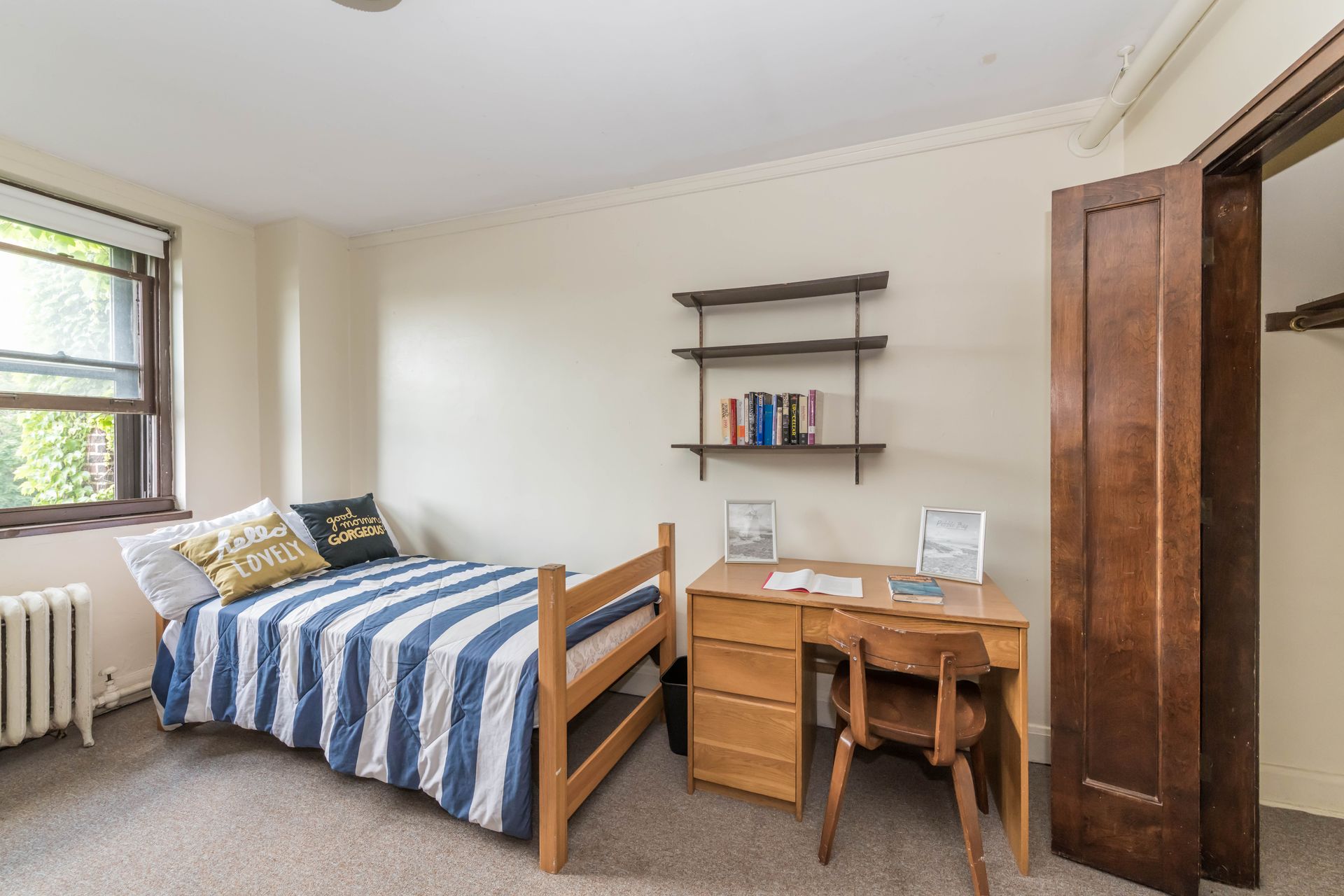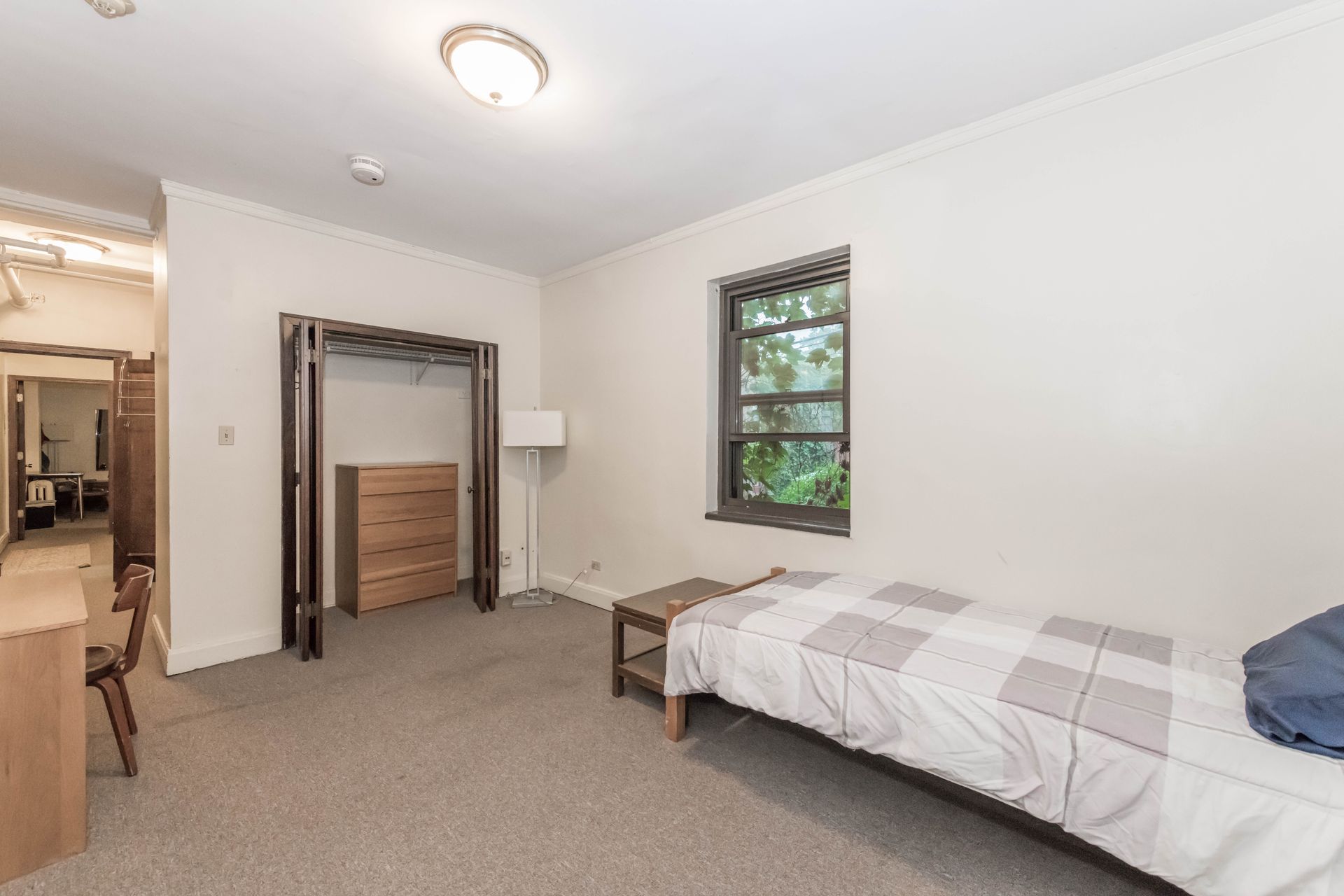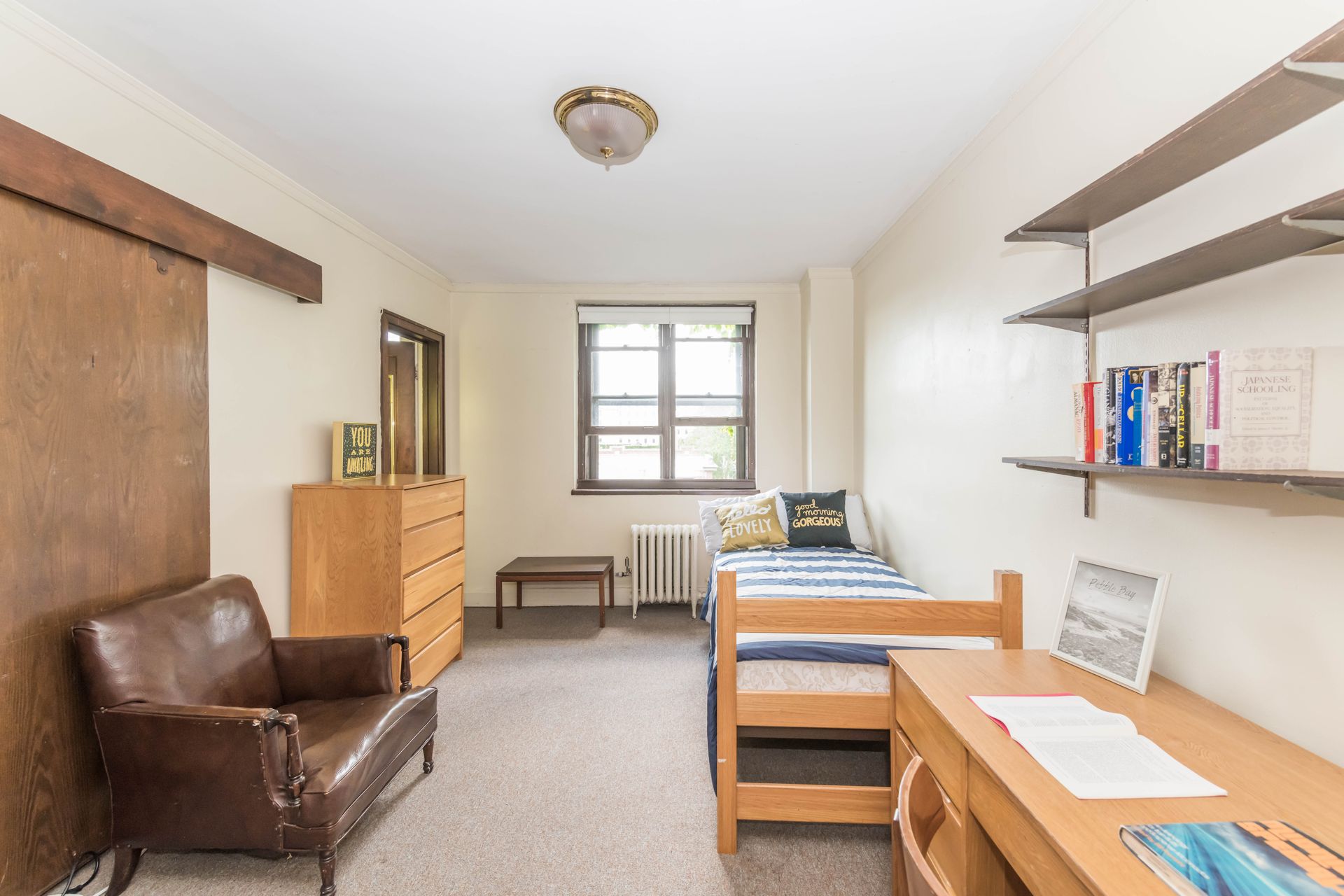 5748 S Blackstone Avenue offers vintage Jack & Jill style units, with a shared kitchenette and bathroom with one other resident – areas can be secured with locking doors on either side. The units come with optional furnishings including mini-fridge, microwave, dresser, desk and bed frame with mattress. 5748 features a study lounge and TV room, along with a full community kitchen on the ground level.
