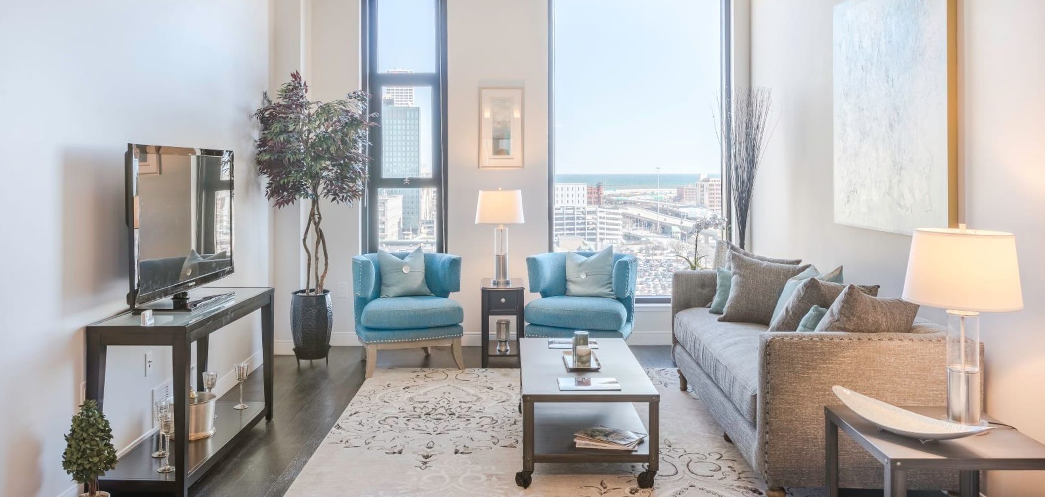 The Buckler offers a wide variety of apartment layouts geared towards an elevated living experience in downtown Milwaukee. Enjoy the high-end finishes, top-of-the-line appliances, and spacious floor plans, creating the perfect combination of comfort and style. Try out our unique, curated amenities such as the basketball court, WIFI lounge, fitness center, and outdoor terrace that raise the bar on city living.