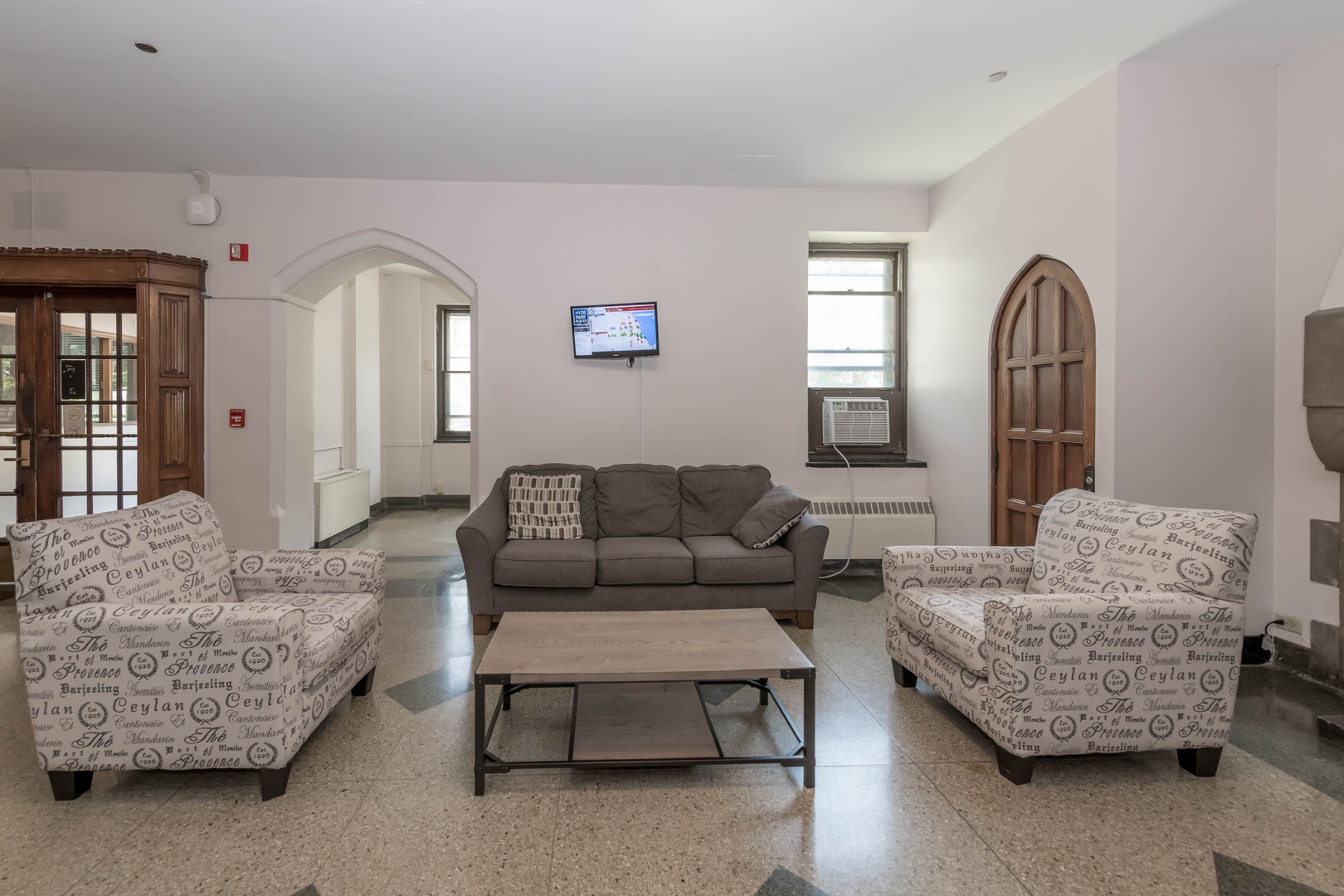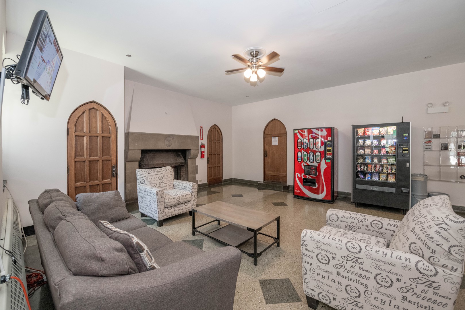 5748 S Blackstone Avenue offers vintage Jack & Jill style units, with a shared kitchenette and bathroom with one other resident – areas can be secured with locking doors on either side. The units come with optional furnishings including mini-fridge, microwave, dresser, desk and bed frame with mattress. 5748 features a study lounge and TV room, along with a full community kitchen on the ground level.